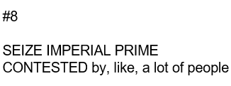 - CHR demagogue takes withdraw action from seize on Imperial Prime. Opposed by Crux gravtank. Crux wins. (#VEL13)