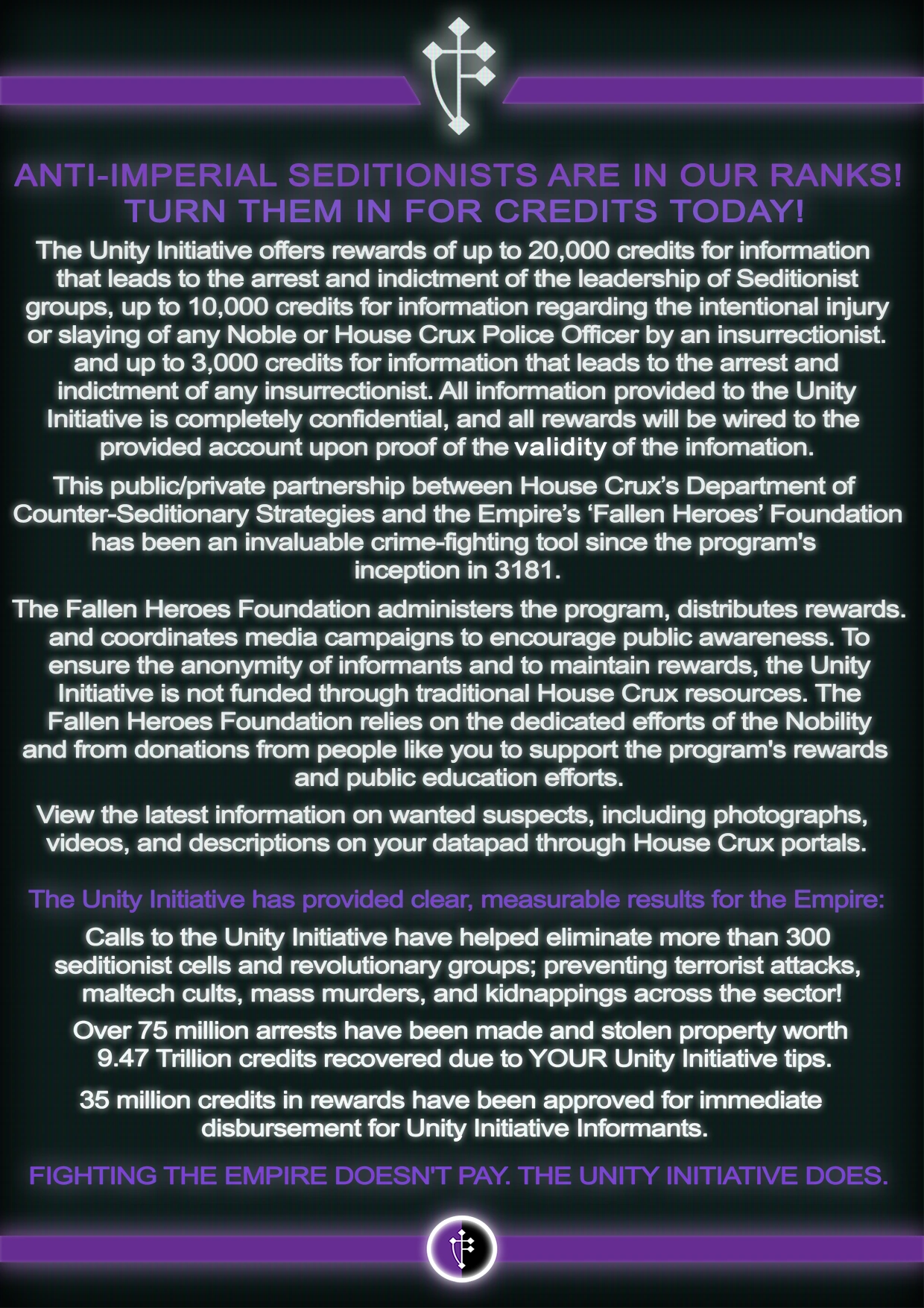 The Unity Initiative! Snitches get riches! |