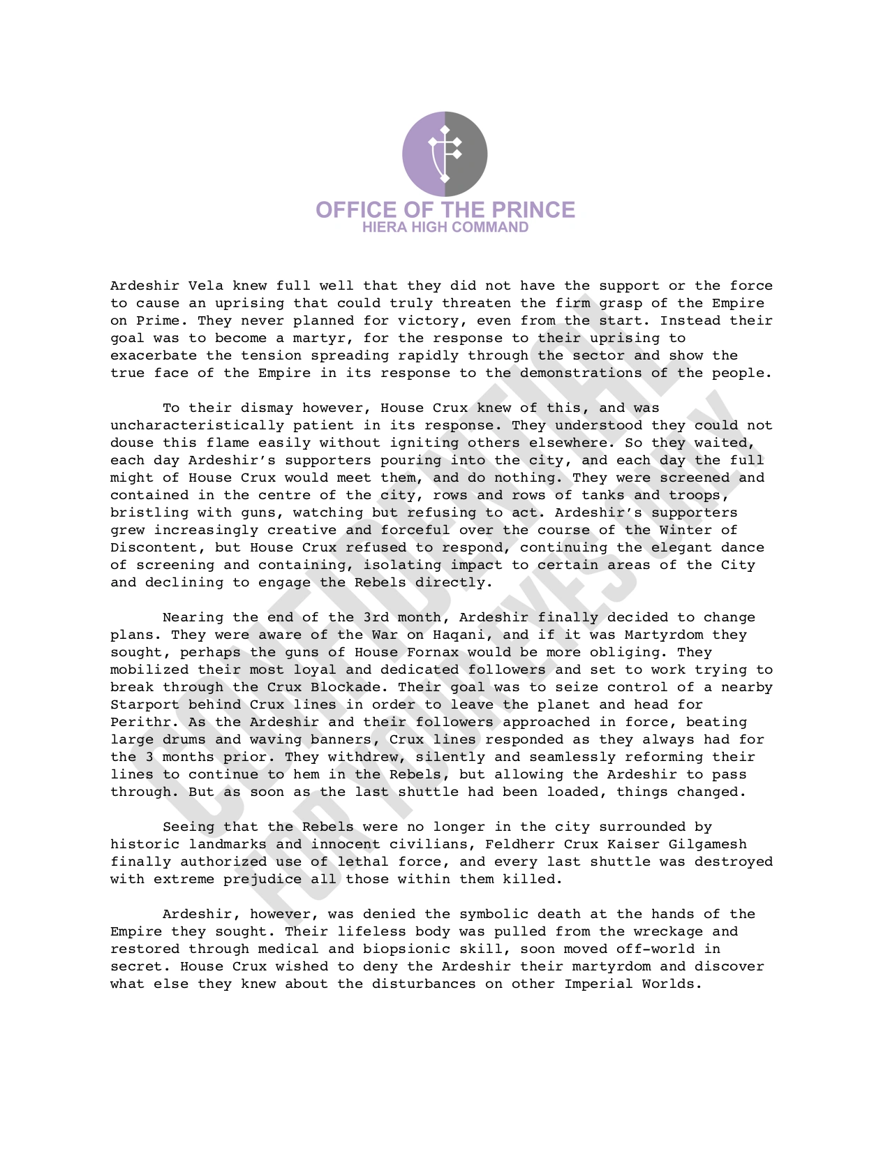 This page contains information on the lore & fluff of House Crux assets and faction turn actions alongside the mechanics.