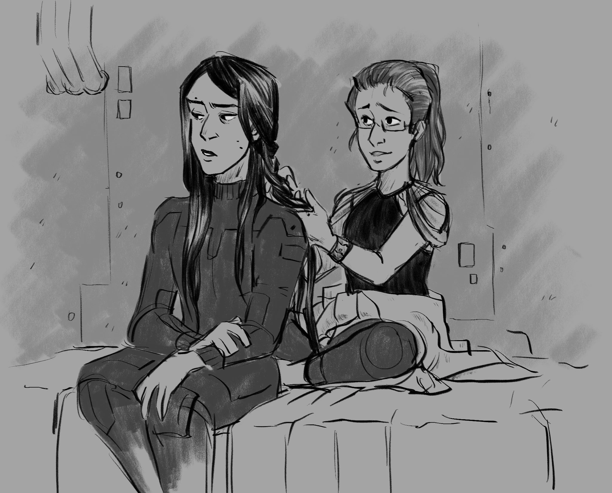 Jasnah's armor and weapons are clearly weathered when we first meet her, likely the same equipment she possessed when she still served House Crux. She is designed for combat, and is quite evidently dangerous and capable of wielding her weaponry to maximum effect. Her hair naturally flows down to around her knees, but she possesses a device capable of rapidly braiding and arranging it.
